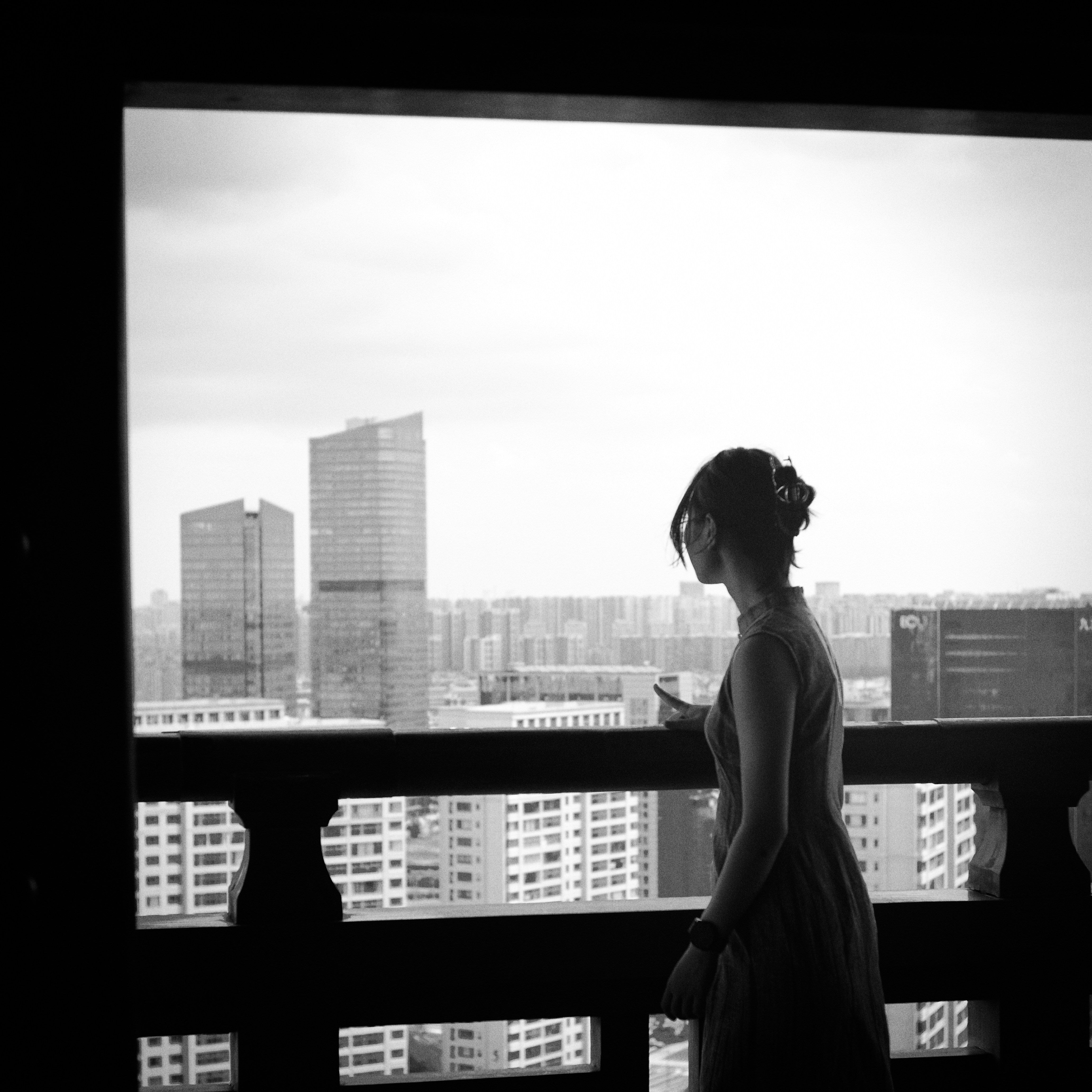 Dark gray shadows blended with off-white highlights and cool blue midtones for a muted finish.